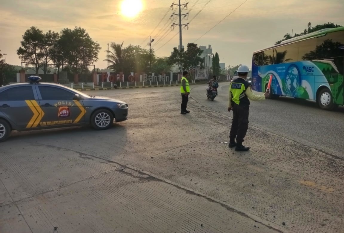 Kapolres Cilegon AKBP Kemas Indra Natanegara Melalui Kapolsek Kskp Banten Polres Cilegon IPTU Fredo Leonard menyampaikan Laksanakan Pengamanan Sesuai plotinganya lakukan Pengaturan Supaya Arus Lalu Lintas tetap Berjalan lancar dan Pastikan tidak ada hambatan.