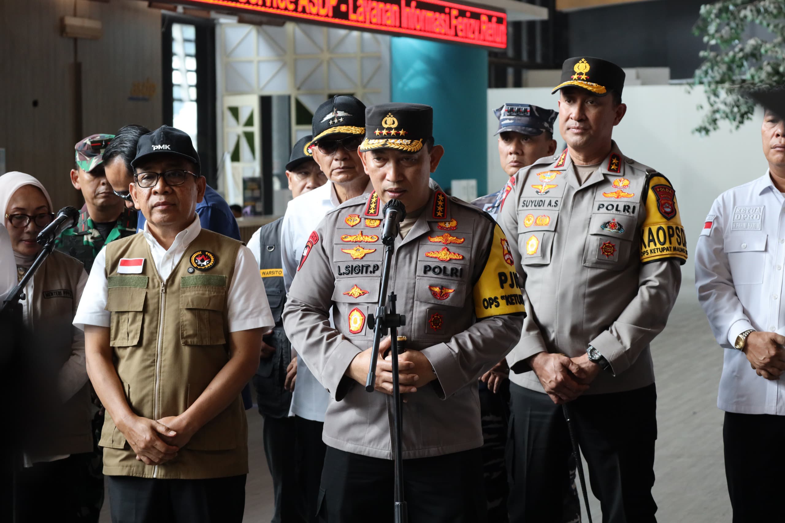 JPPOS.ID || Menko Pembangunan Manusia dan Kebudayaan (PMK) Pratikno, Panglima TNI Jenderal Agus Subiyanto, dan Kapolri Jenderal Listyo Sigit Prabowo tinjau pengamanan penyeberangan di Pelabuhan Merak pada Rabu (26/03).