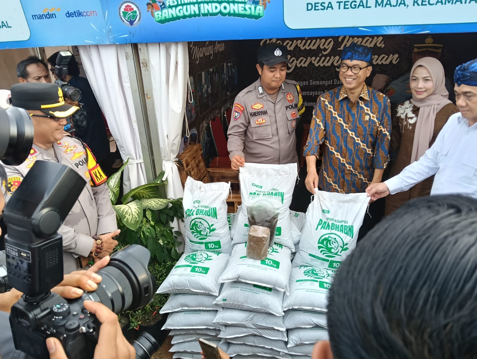 Dalam kunjungannya ke stand-stand produk usaha mikro kecil menengah (UMKM), Yandri Susanto memberikan apresiasi dan dukungan pada personil Bhabinkamtibmas Polsek Kragilan, Polres Serang bersama Kepala Desa Tegal Maja yang telah membantu mengurangi pengangguran dengan memproduksi pupuk kompos “Pak Bhabin”.