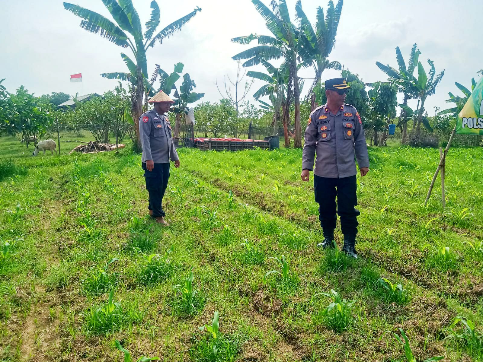 “Untuk memastikan bahwa tanaman jagung di lahan seluas ± 6000 m2 yang telah berumur 16 hari dalam kondisi sehat dan tumbuh dengan baik,” jelas Kapolsek