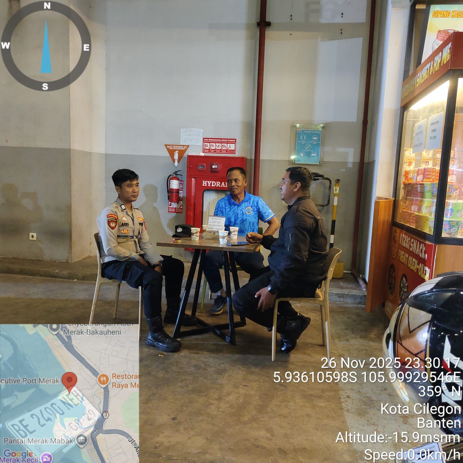 JPPOS.ID || Personil Polsek Kskp Merak Polres Cilegon melaksanakan patroli di kawasan pelabuhan merak memberikan rasa aman dan damai, Kamis (27/11/2025)