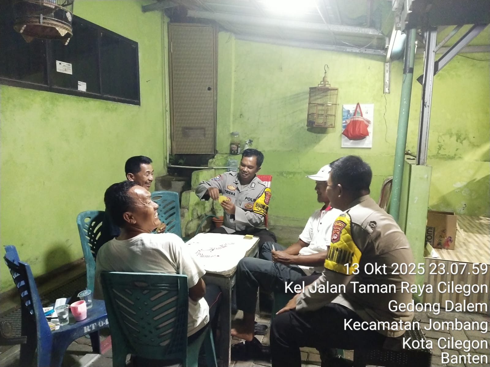 JPPOS.ID || POLRES CILEGON-* Polda Banten. Dalam Rangka Ciptakan situasi kamtibmas kondusif Polsek Cilegon laksanakan himbauan kamtibmas kepada rt dan rw serta warga sekitar agar selalu menjaga kamtibmas secara bersama-sama salah satunya mengaktifkan dan meningkatkan kegiatan siskamling di wilayahnya. serta sebagai _*Cooling Sistem*_ Kamtibmas di wilayah binaan agar Aman, Kondusif dan terkendali. Sabtu (18/10/2025).