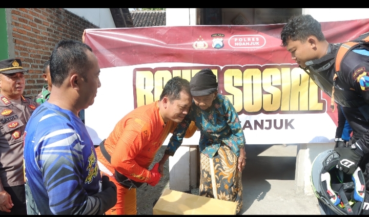 Bantuan sosial diserahkan langsung oleh Kapolres Nganjuk bersama Wakapolres Kompol Andria Diana Putra, S.E., M.H., para PJU Polres Nganjuk, Kapolsek Berbek, Kapolsek Sawahan, serta didampingi unsur TNI, Polri, Bhabinsa, Bhabinkamtibmas, dan perangkat desa. Sekitar 30 anggota komunitas trail juga turut mendampingi patroli di medan pedesaan.