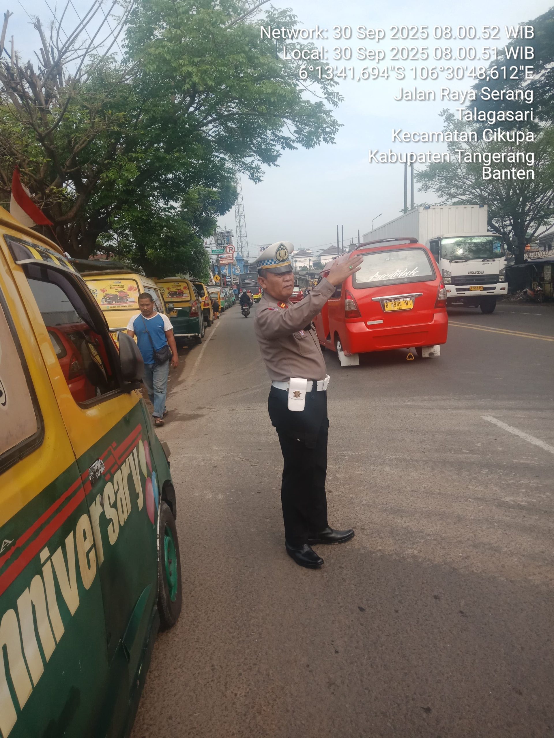 JPPOS.ID || Tangerang – Selasa, 30 September 2025, personel Lantas Polsek Cikupa Polresta Tangerang melaksanakan pengaturan arus lalu lintas (PECAK) pagi hari di Jalan Raya Serang, tepatnya Pertigaan Columbus PT. Cingluh, mulai pukul 06.30 hingga 08.00 WIB.