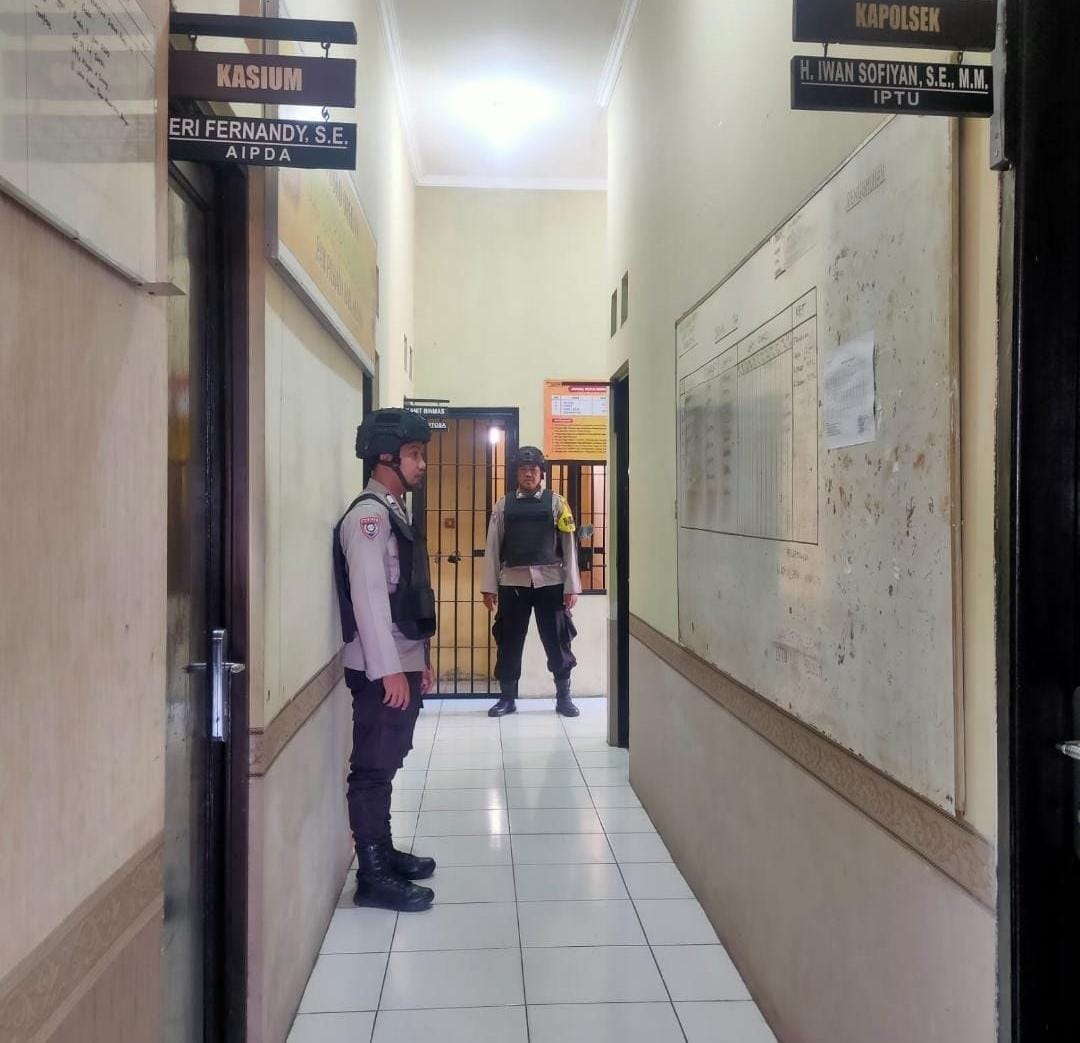 Kapolres Cilegon Polda Banten AKBP Dr. Martua Raja Taripar Laut Silitongamelalui Kapolsek Anyar Polres Cilegon Polda Banten IPTU Iwan Sofiyan menyampaikan bahwa personil harus siap siaga untuk antisipasi gangguan keamanan baik dari luar mako serta pengecekan tahanan di Mako Polsek Anyar Polres Cilegon Polda Banten.