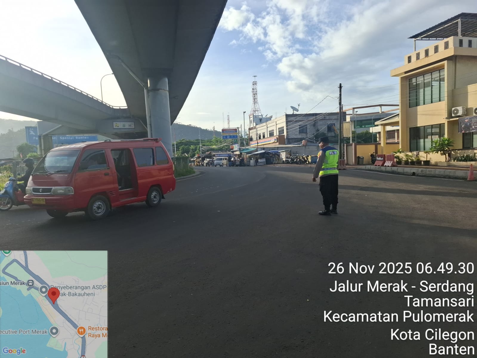 Pengaturan Kendaraan di Laksanakan Personil Polsek Kskp Merak Polres Cilegon Polda Banten