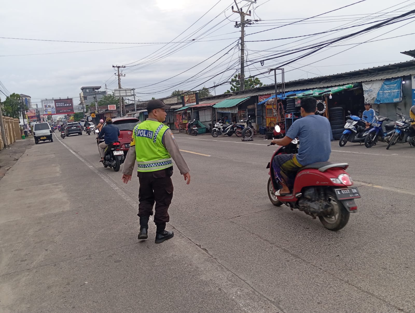 JPPOS.ID || Pelayanan Kepada Warga Masyarakat dan Guna menciptakan situasi lalu lintas yang aman, tertib dan lancar, Personel Polsek Anyar Polres Cilegon Polda Banten secara rutin melaksanakan pengaturan lalu lintas di Simpang Puskesmas Anyar Jl. Raya Anyar-Cinangka, Kamis (08/05).