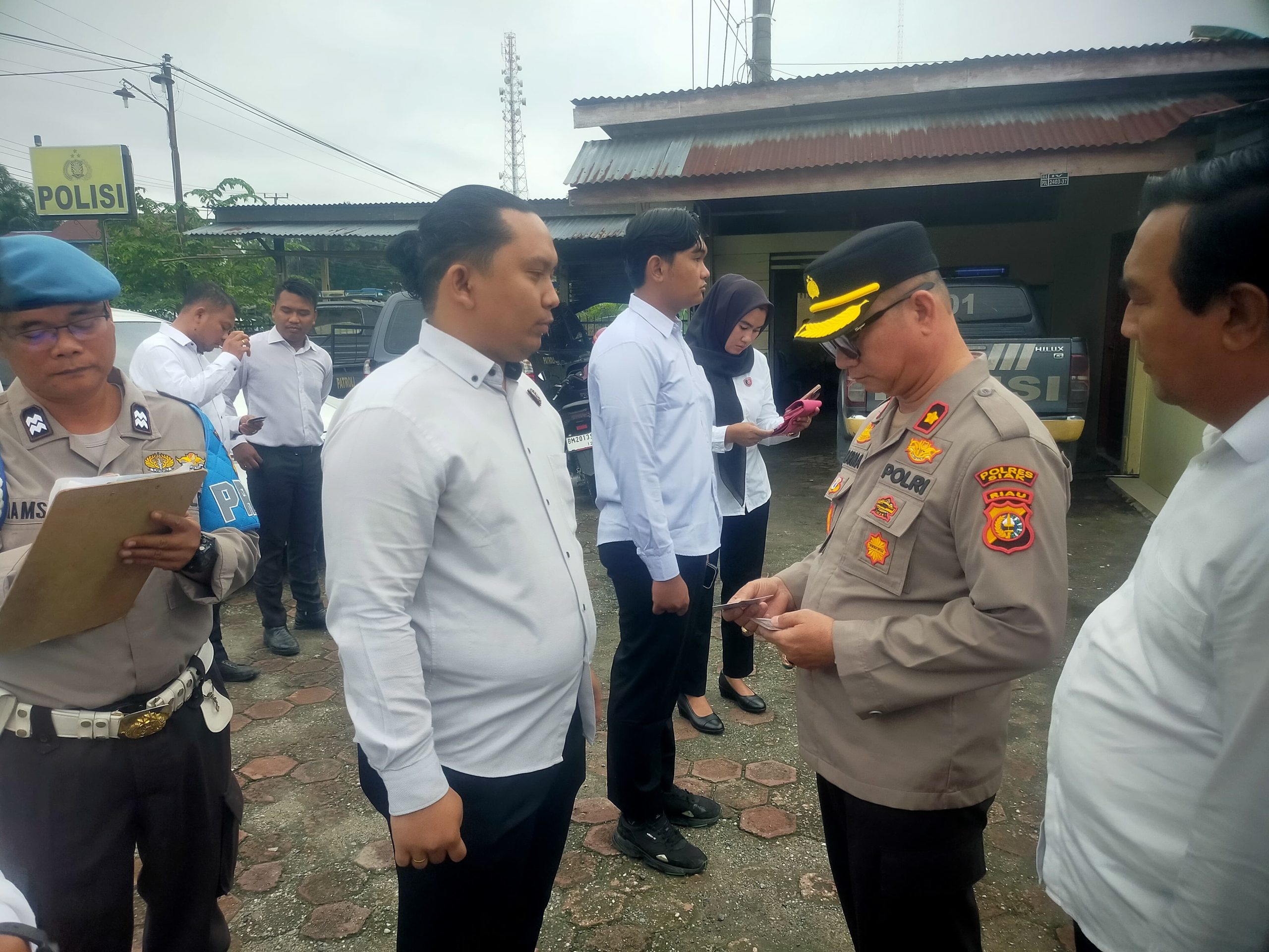 Pemeriksaan berlangsung tertib dan lancar, menunjukkan tingkat kesadaran yang baik dari personel Polsek Kandis dalam mematuhi peraturan dan standar yang berlaku.