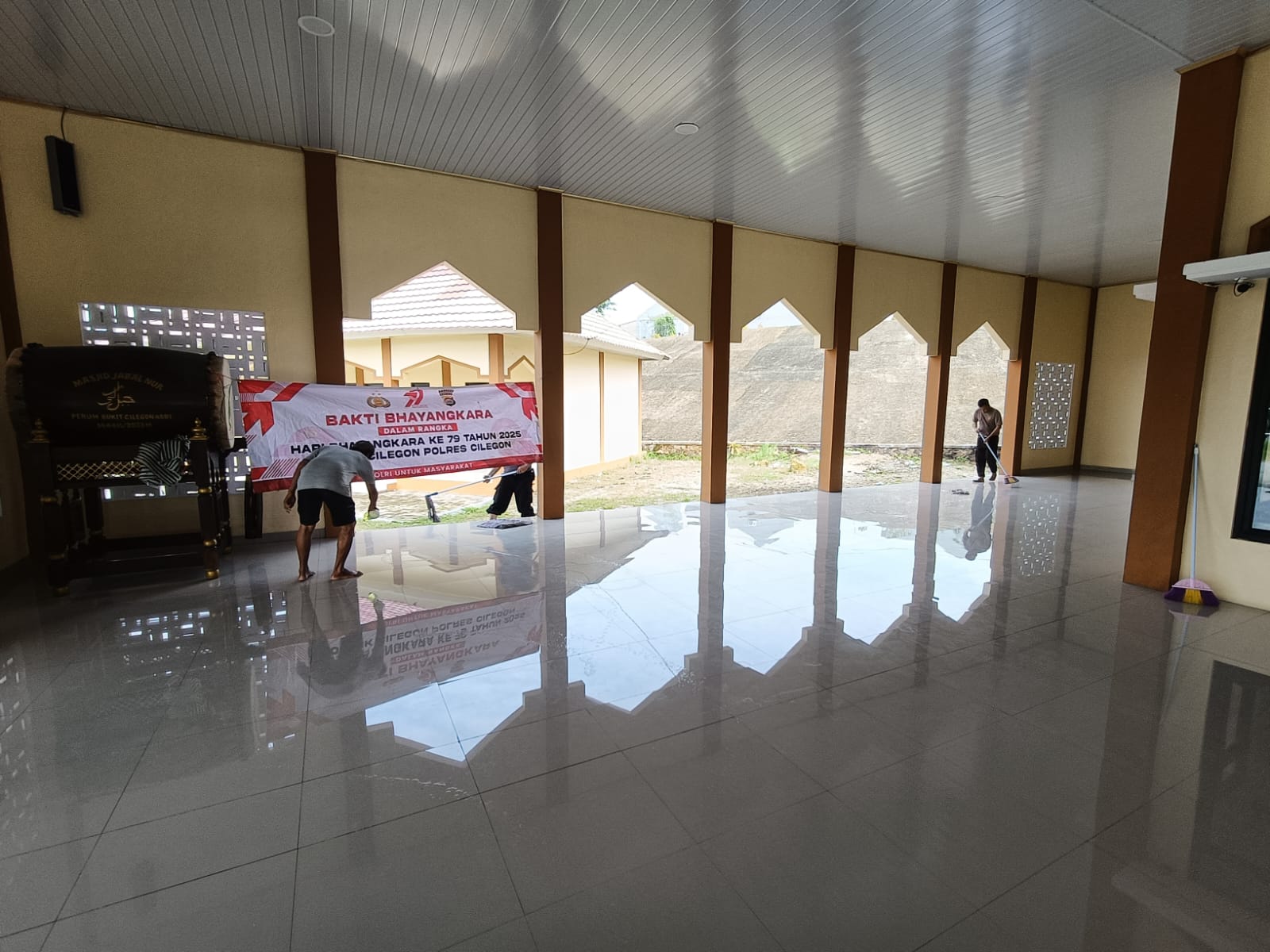 Kapolsek Cilegon Kompol Firman Hamid M.H bersama personel Polsek Cilegon Melaksanakan Bakti Bhayangkara membersihkan Mesjid Jabal Nur Perumahan Bukit Cilegon Asri Kel. Bagendung Dalam Rangka HUT Bhayangkara ke 79 Tahun 2025.
