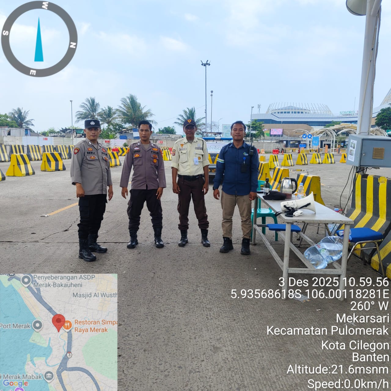 JPPOS.ID || Personel Polsek Kskp Merak Polres Cilegon Polda Banten melaksanakan sambang dan patroli kawasan pelabuhan merak dalam rangka menjaga Harkamtibmas di Kawasan Pelabuhan Merak, Rabu (03/12/2025).