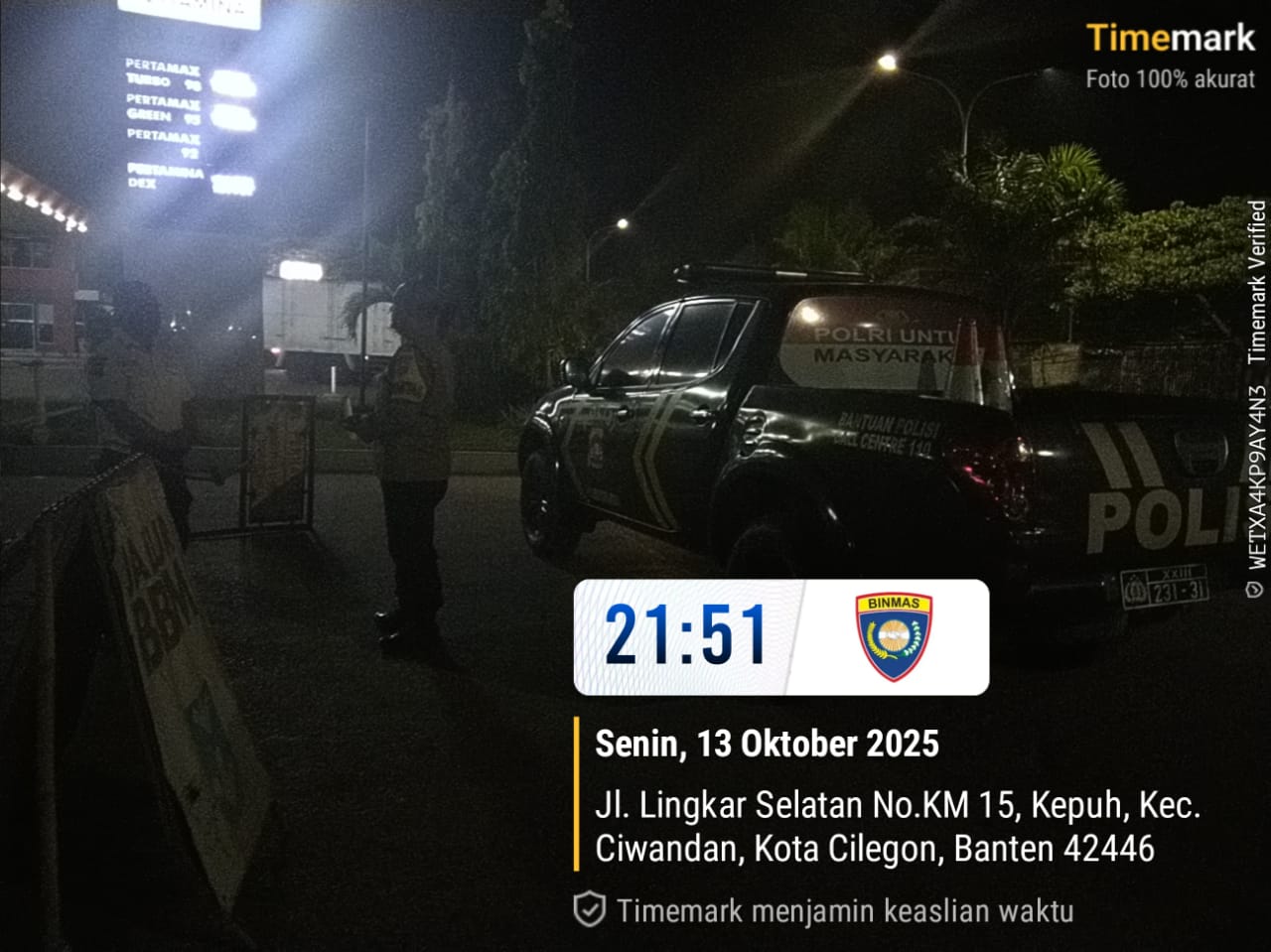 JPPOS.ID || Personil Polsek Ciwandan Ciptakan situasi keamanan dan ketertiban di masyarakat (Kamtibmas) yang aman kondusif Dengan Melaksanakan kegiatan patroli malam guna mencegah gangguan kamtibmas dan kejahatan jalanan, Selasa (14/10/2025).
