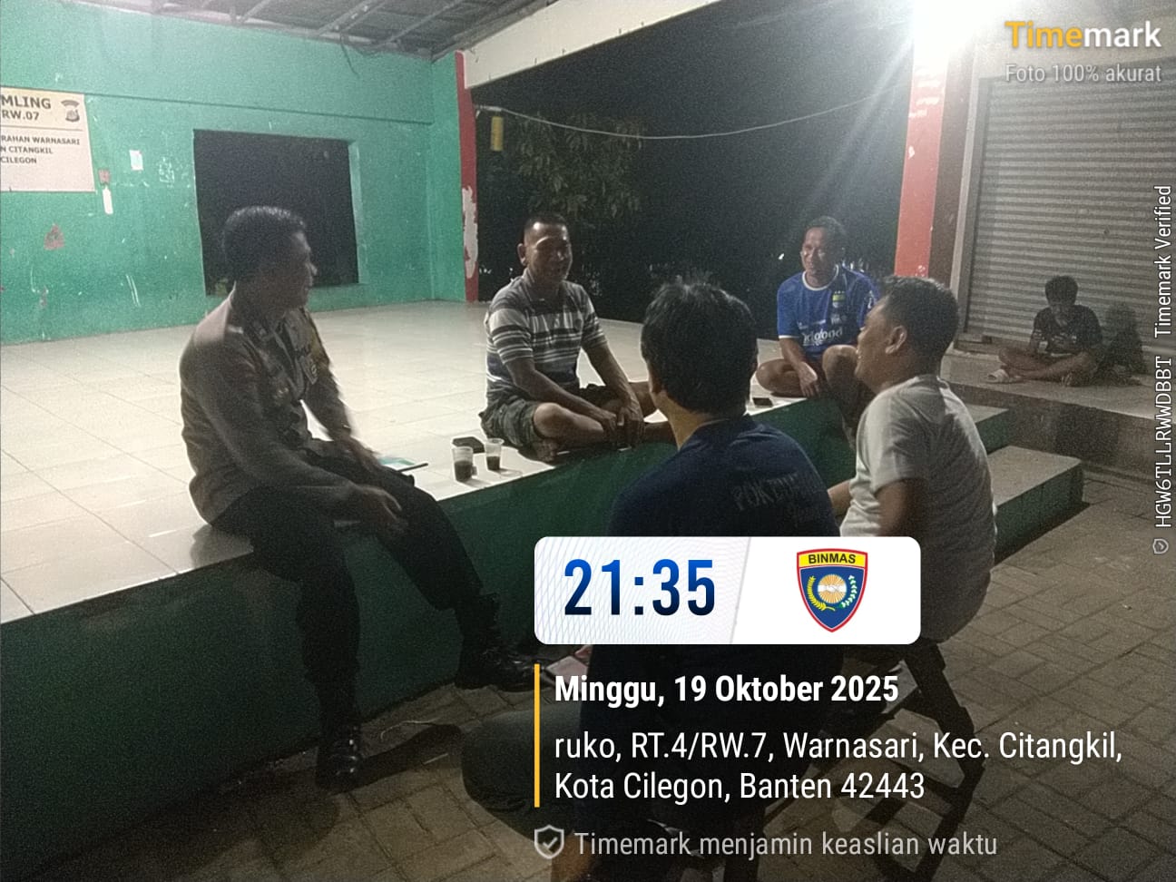 Kapolres Cilegon Polda Banten AKBP Dr. Martua Raja Taripar Laut Silitonga Melalui Kapolsek Ciwandan Polres Cilegon Polda Banten KOMPOL Andi Suherman mengatakan bahwa personelnya memantau kegiatan Siskamling di Daerah binaannya untuk menjaga stabilitas keamanan dan ketertiban masyarakat.