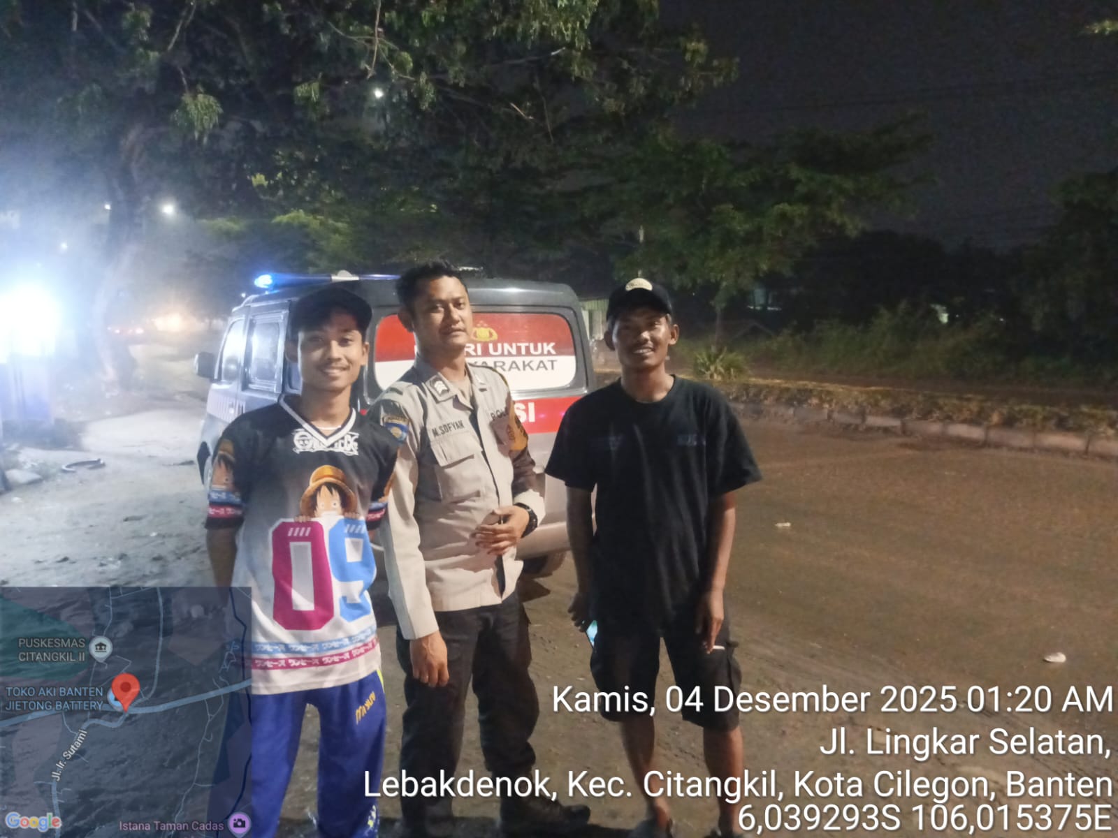 JPPOS.ID || Personil Polsek Ciwandan Polres Cilegon Polda Banten memberikan himbauan kamtibmas dan motivasi kepada anak-anak Remaja Yang sedang Nongkrong Dipinggir Jalan Lingkungan Binaan, Kamis (04/12/2025).