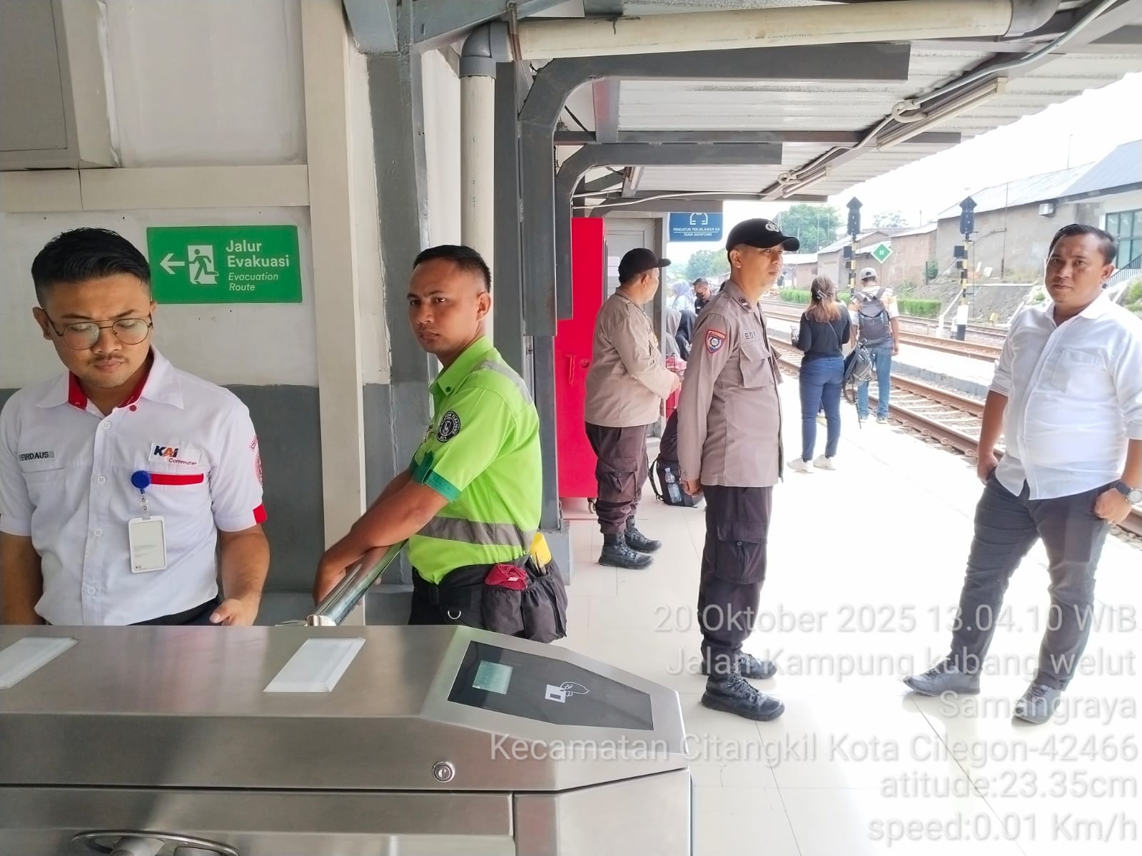JPPOS.ID || Personil Polsek Ciwandan Polres Cilegon Polda Banten melaksanakan giat patroli Dan dengan sambangi Petugas Stasiun Kereta Api dan penjaga pintu perlintasan kereta api, Senin (20/10/2025).