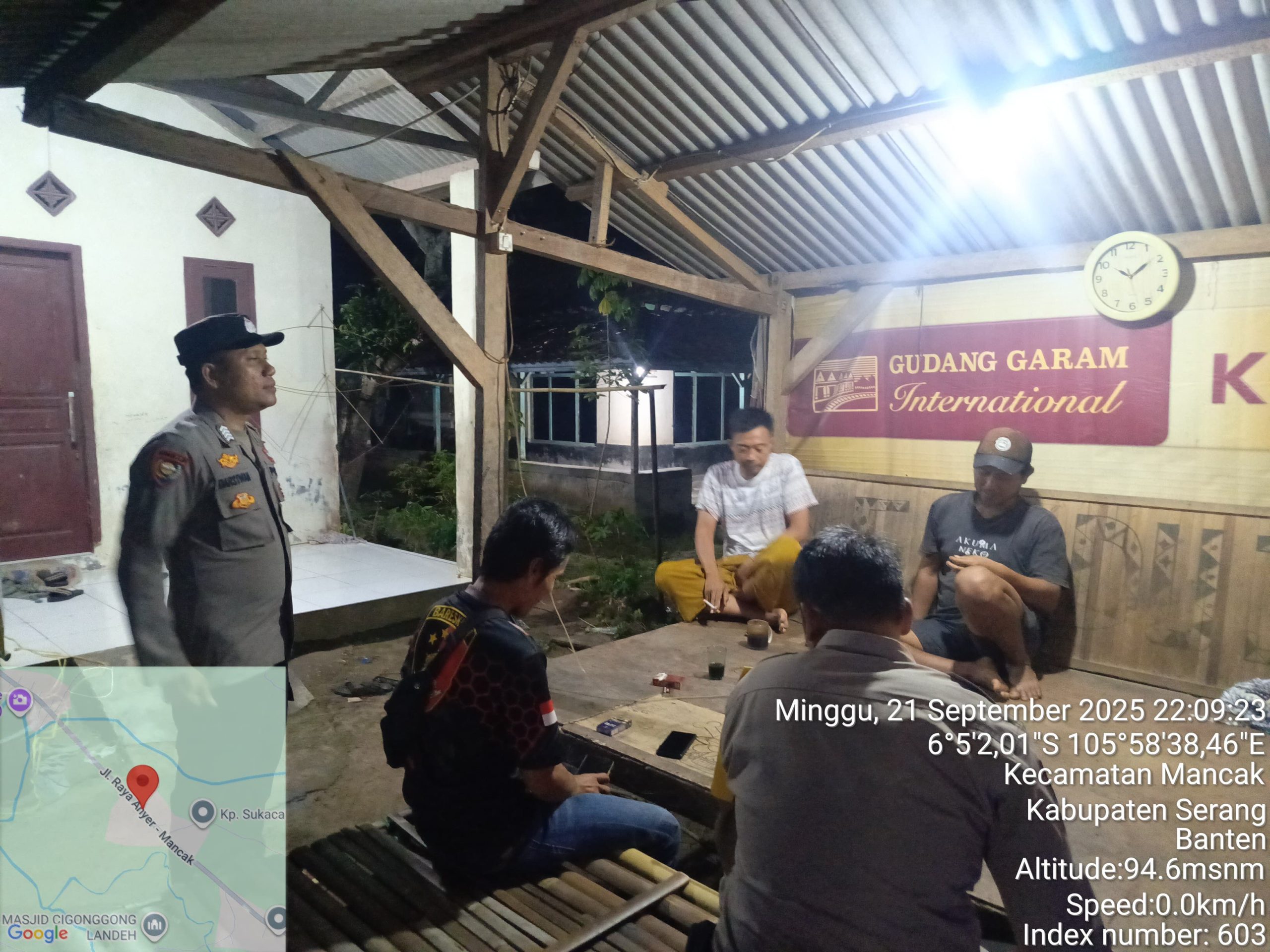 JPPOS.ID || Personel Polsek Mancak Polres Cilegon Polda Banten sebagai bentuk mendukung Program Quick Wins Presisi Polri laksanakan Patroli pada malam hari di kewilayahan guna untuk menekan 3C (Curat, Curas, Curanmor) dan gangguan kriminalitas lainnya. Senin dini hari (22/09/2025)