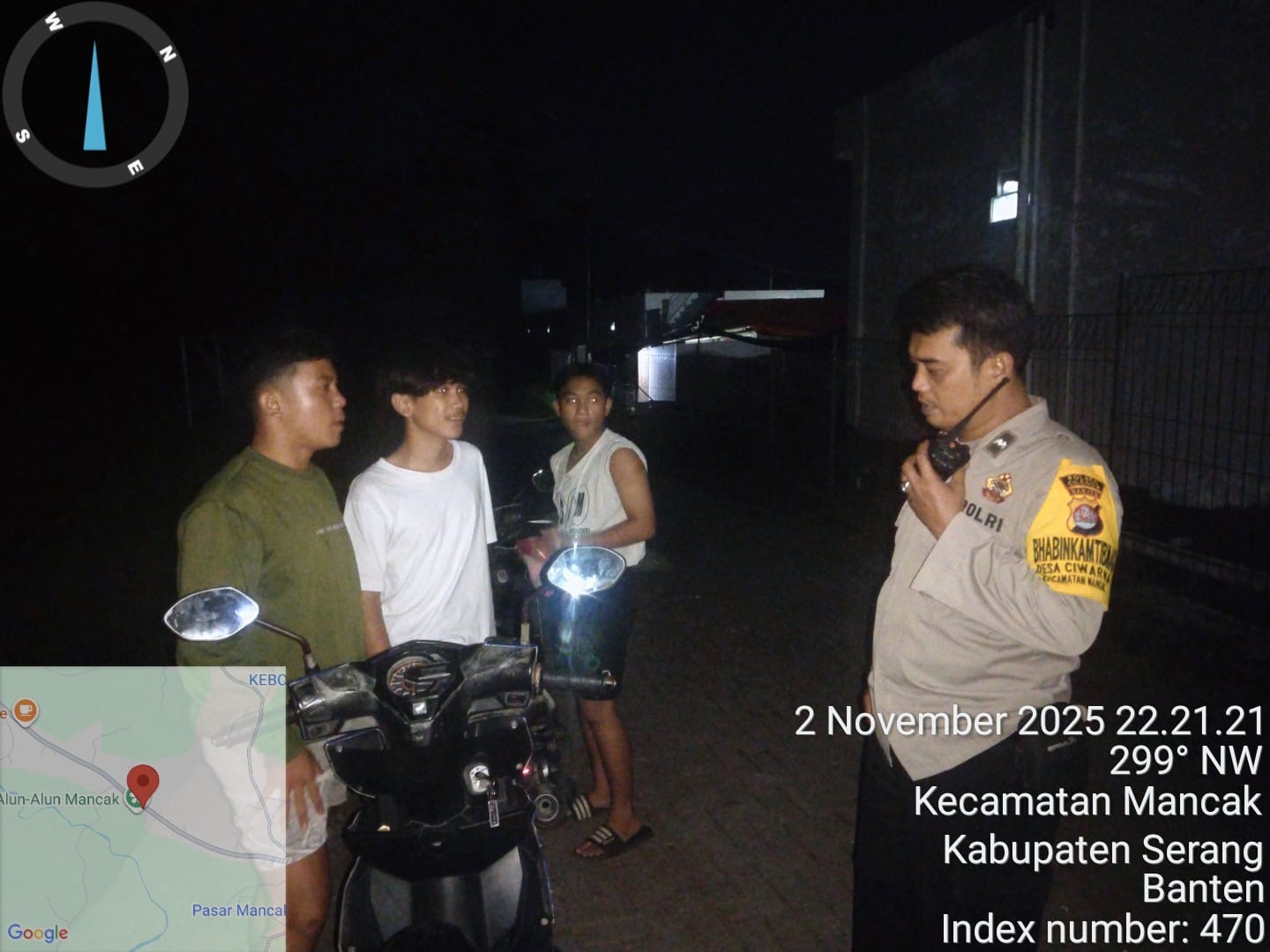 JPPOS.ID || Personel Polsek Mancak Polres Cilegon Polda Banten sebagai bentuk mendukung Program Quick Wins Presisi Polri laksanakan Patroli pada malam hari di kewilayahan guna untuk menekan 3C (Curat, Curas, Curanmor) dan gangguan kriminalitas lainnya. SENIN, (03/11/2025).