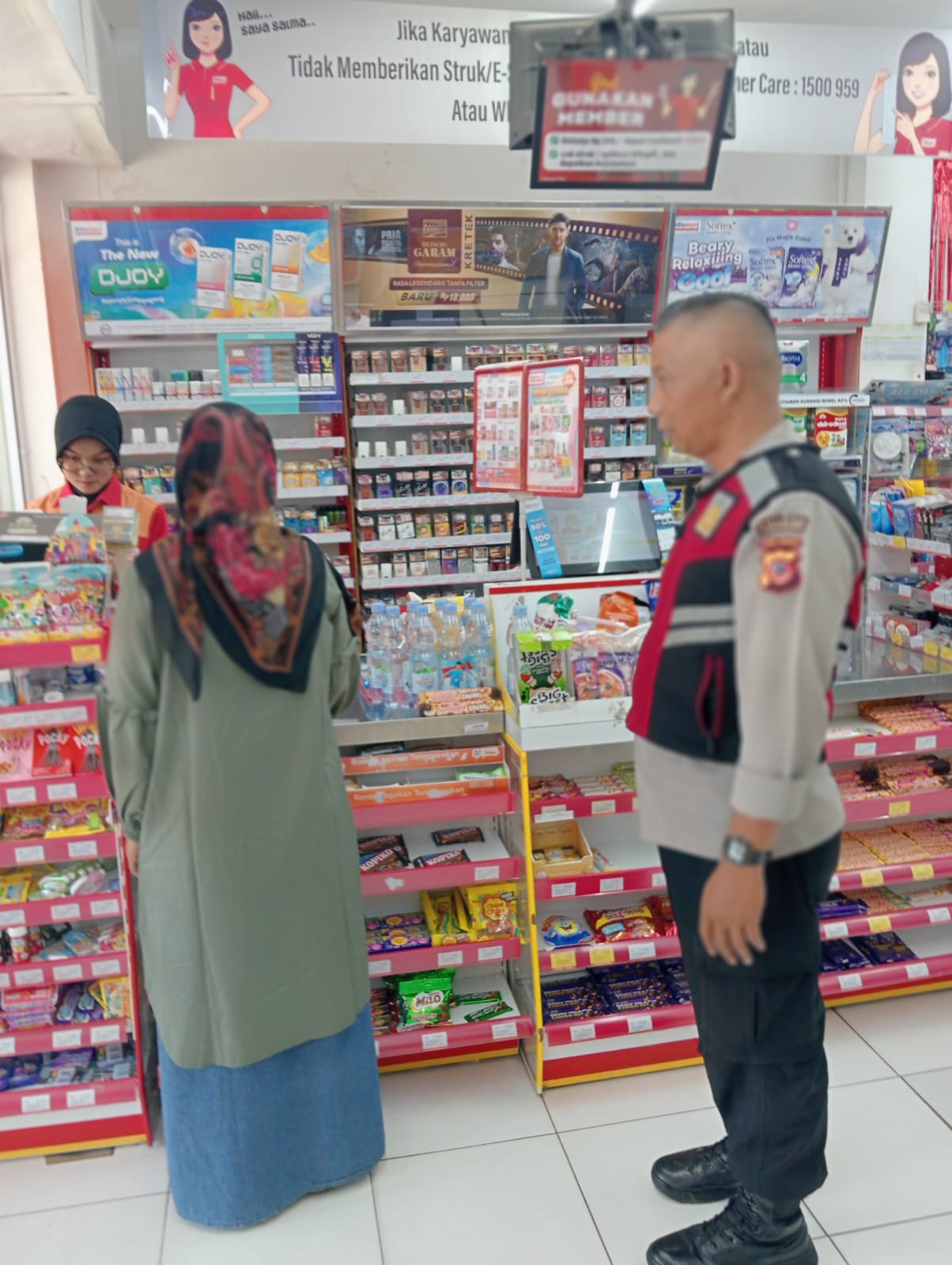 Personil Polsek Tegalwaru edukasi penjaga sebuah minimarket secara dialogis dan humanis agar waspada dari aksi kejahatan dan potensi potensi nya.