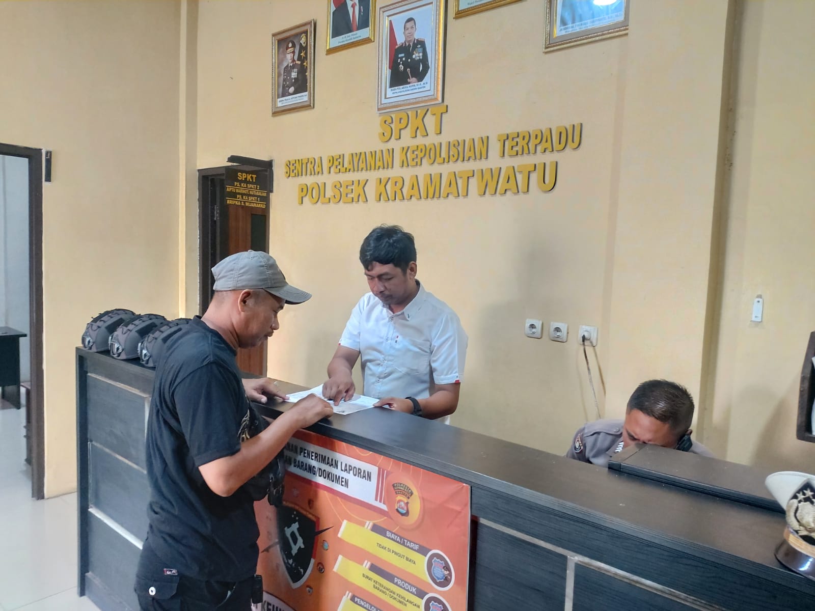Briptu Deden selaku Anggota piket Polsek kramatwatu Polresta Serkot Polda Banten menjelaskan kepada masyarakat perihal tentang cara pembuatan kembali surat surat yang hilang serta masa berlaku surat kehilangan tersebut.