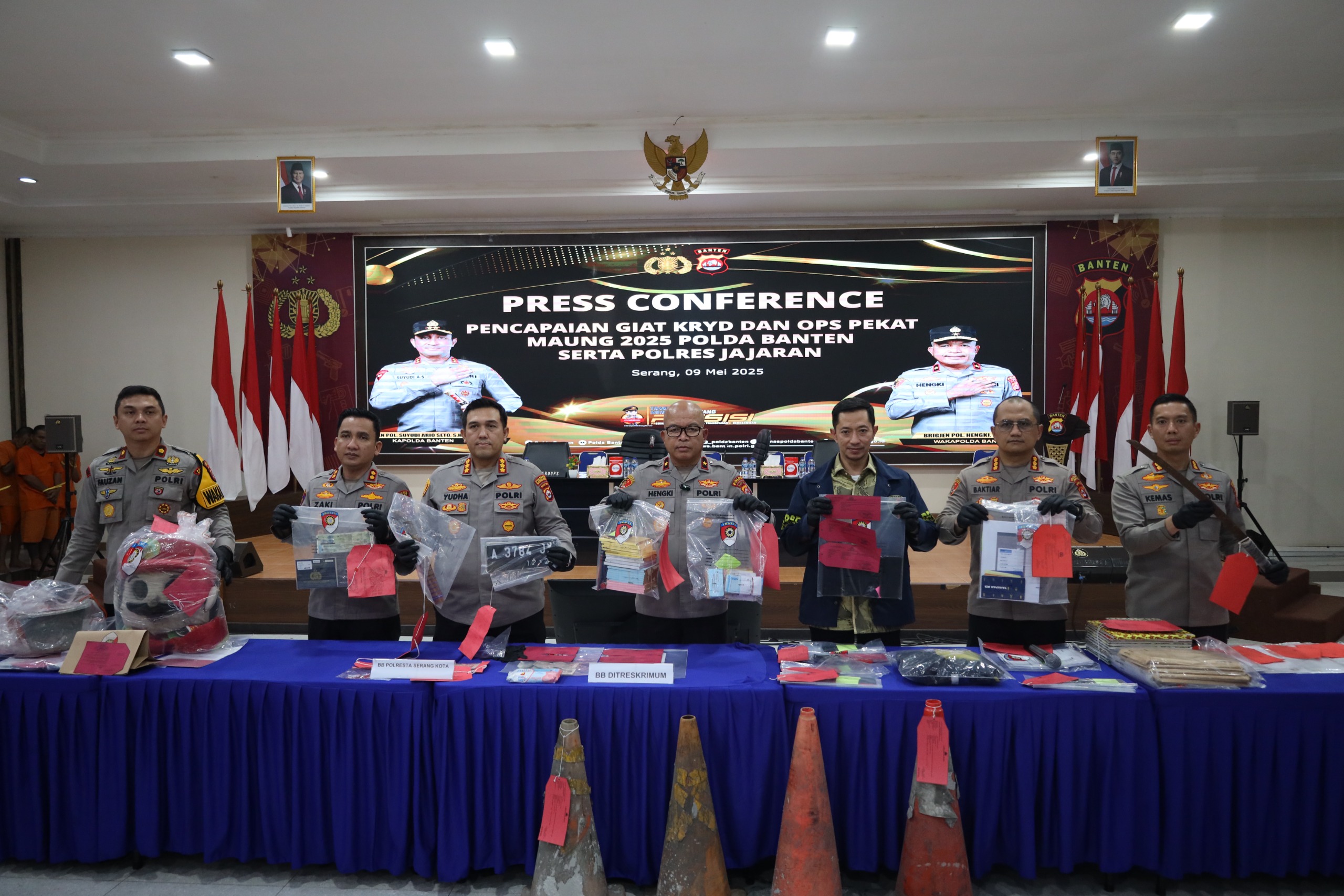 JPPOS.ID || POLRESTA SERKOT_ Polda Banten beserta Polres Jajaran melaksanakan Press Conference hasil Operasi Pekat Maung 2025 dan Kegiatan Rutin Yang Ditingkatkan (KDYD), bertempat di Aula Serbaguna Polda Banten pada Jumat (09/05).