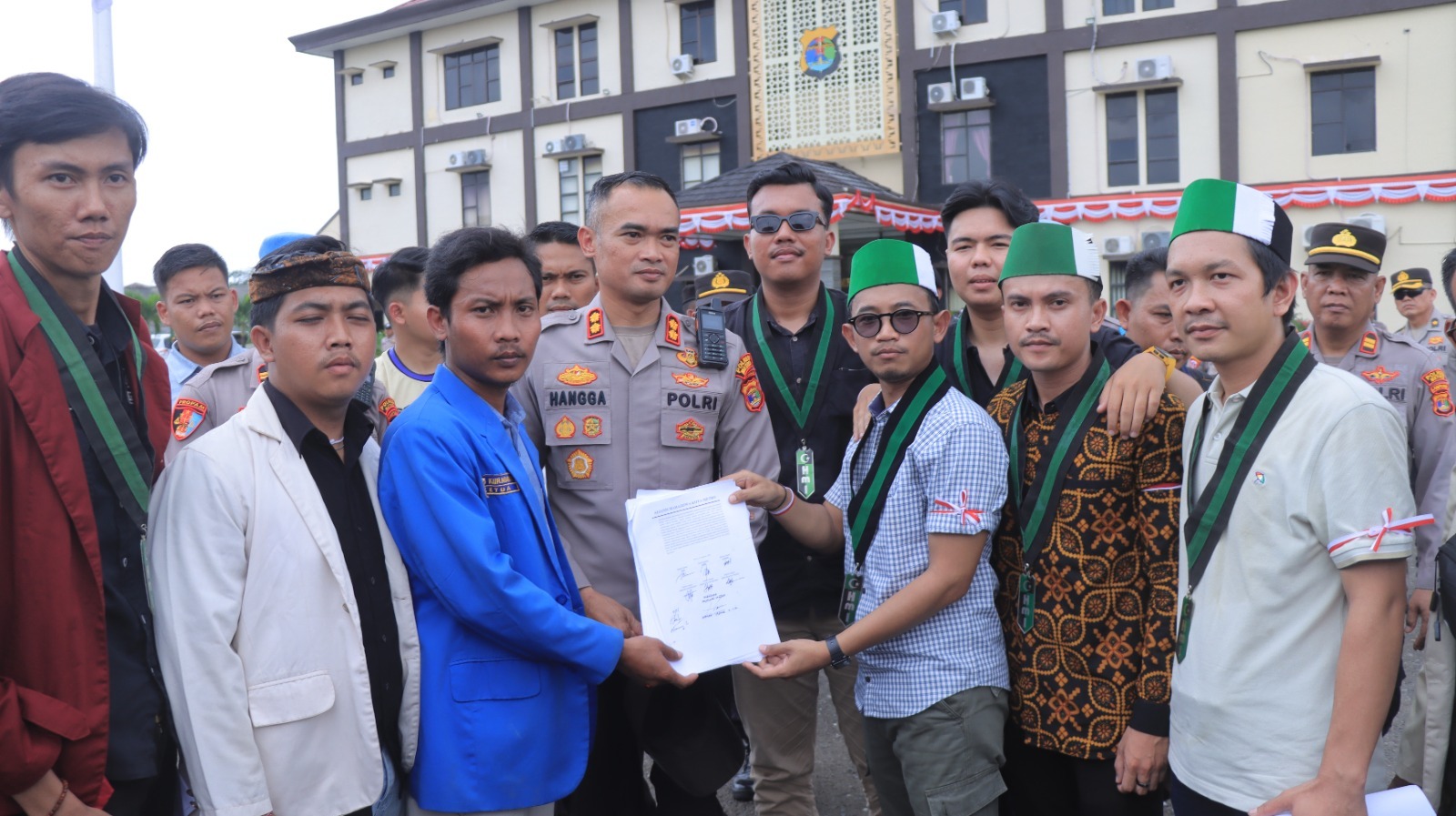 Langkah yang diambil Kapolres Metro, AKBP Hangga Utama Darmawan, S.IK menjadi catatan tersendiri. Bukan barikade atau intimidasi yang dihadirkan, melainkan sambutan terbuka. Di hadapan mahasiswa, AKBP Hangga menyampaikan apresiasi atas tertibnya aksi yang berlangsung.
