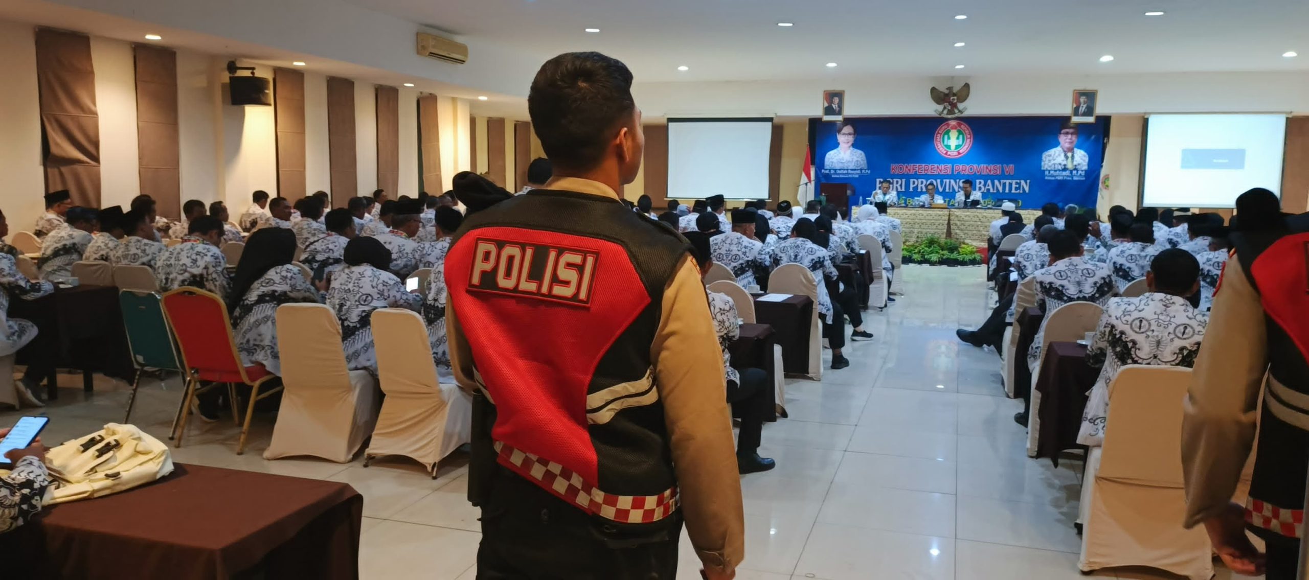 Kapolres Cilegon Polda Banten AKBP Kemas Indra Natanegara melalui Kapolsek Anyar Polres Cilegon Polda Banten IPTU Iwan Sofiyan Personil Polsek Anyar Dan Personil BKO Sat Sabhara Mabes Polri melaksanakan pengamanan Konferensi Provinsi ke VI PGRI Provinsi Banten di Ballroom hotel The Jayakarta Villas Anyar Kp. Sirih Lor Ds. Bandulu Kec Anyar dengan agenda Pemilihan Ketua dan Kepengurusan PGRI Provinsi Banten Periode tahun 2025 s.d 2029. kegiatan ini bertujuan dalam menjaga Harkamtibmas.