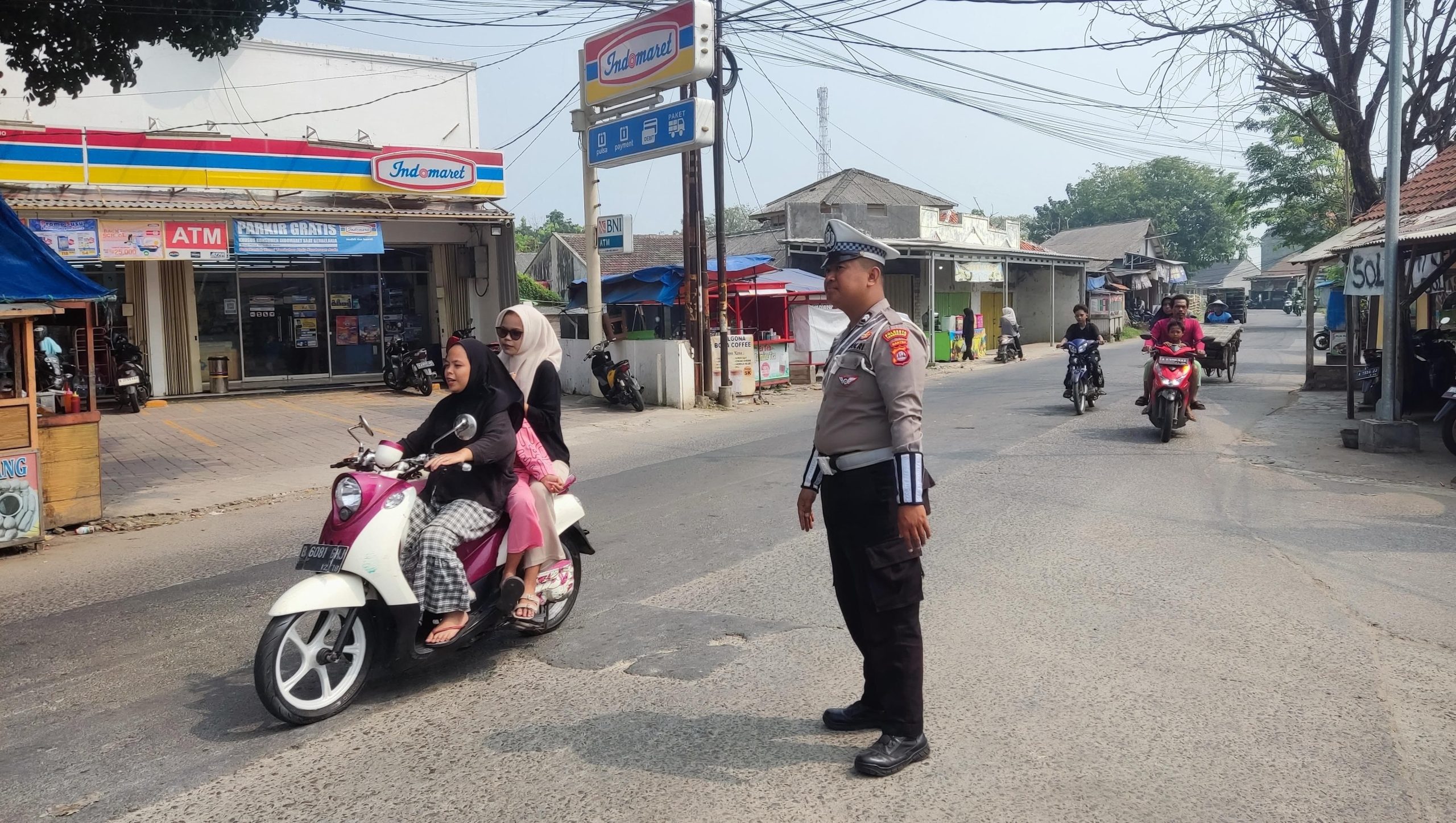 Dua personel Unit Lantas yang diterjunkan adalah Aipda Indra Supriyatna (Kanit Lantas Polsek Kronjo) dan Briptu Mubdi, yang aktif mengatur arus kendaraan serta membantu penyeberangan warga dan bus karyawan di jam sibuk.
