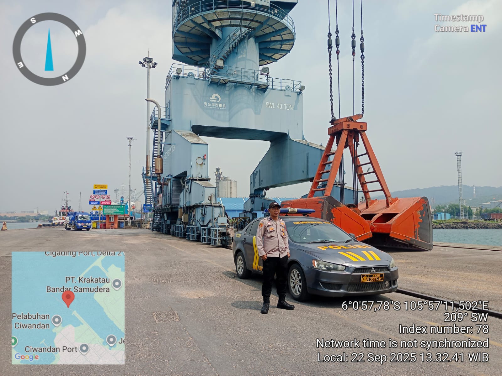 JPPOS.ID || Mengantisipasi adanya gangguan Kamtibmas dan Implementasikan Program Quick Wins Presisi Polri Polres Cilegon di kawasan pelabuhan di daerah hukum Polsek Kskp Banten Polres Cilegon Polda Banten khususnya pelaku tindak pidana bajing loncat terhadap angkutan bongkar muat, Polsek Kawasan Pelabuhan Banten Polres Cilegon Polda Banten meningkatkan Patroli siang hari di Wilayah Polsek Kskp Banten Senin (22/09).