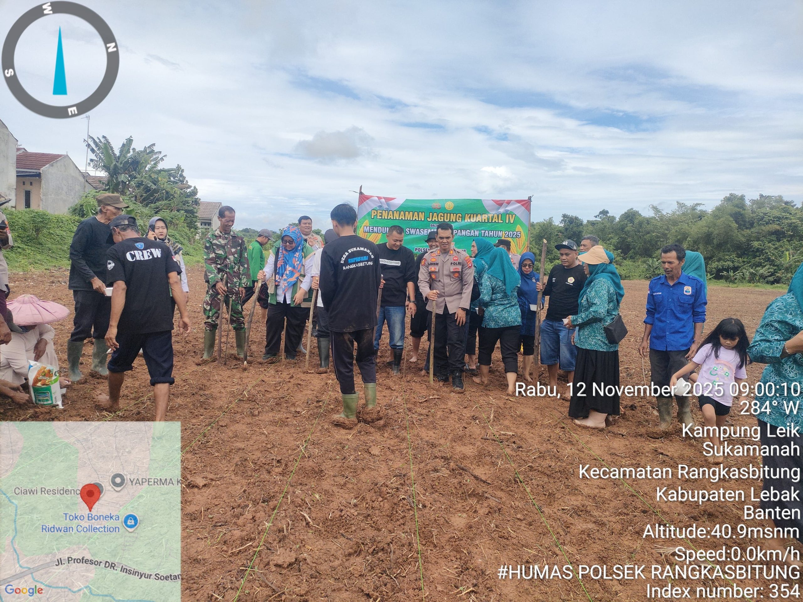 JPPOS.ID || LEBAK-Menindak lanjuti program ketahanan pangan Polsek Rangkasbitung Polres Lebak beserta instasi lain menanam jagung, di Kampung Cilangkap, Desa Sukamanah, Kecamatan Rangkasbitung, Kabupaten Lebak.Rabu (12/11/2025).