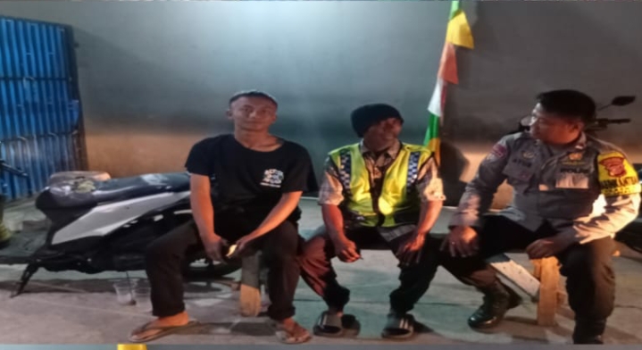 Kegiatan ngawangkong yang dilakukan anggota patroli Polsek Rengasdengklok Aipda Ayub Wahyudin S.H bersama Bripka Ghojali Rahman dengan petugas ronda poskamling Dusun warudoyong Desa Rengasdengklok Selatan Kec.Rengasdengklok Kab.Karawang,
