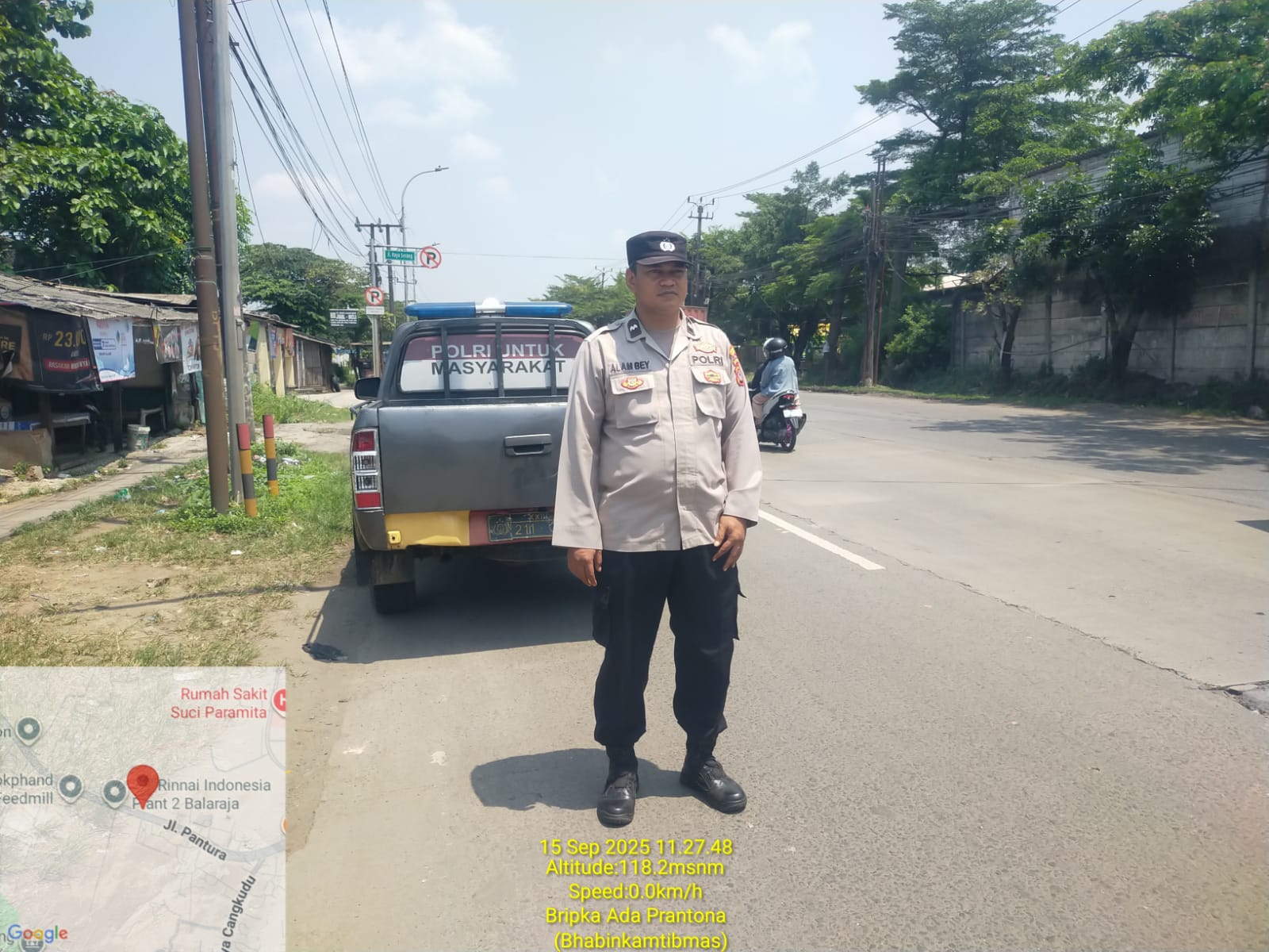 JPPOS.ID || TANGERANG | Bhabinkamtibmas Polsek Balaraja Polresta Tangerang Aipda Alam Bey dan Bripka Ada P. lakukan Patroli Dialogis dan Sambang siang hari antisipasi skaligus mencegah Aksi Premanisme, Kriminalitas, Tawuran dan kenakalan Anak Remaja di Jln Raya Serang Desa Cangkudu Kecamatan Balaraja – Kab Tangerang. Senin (15/09/2025)