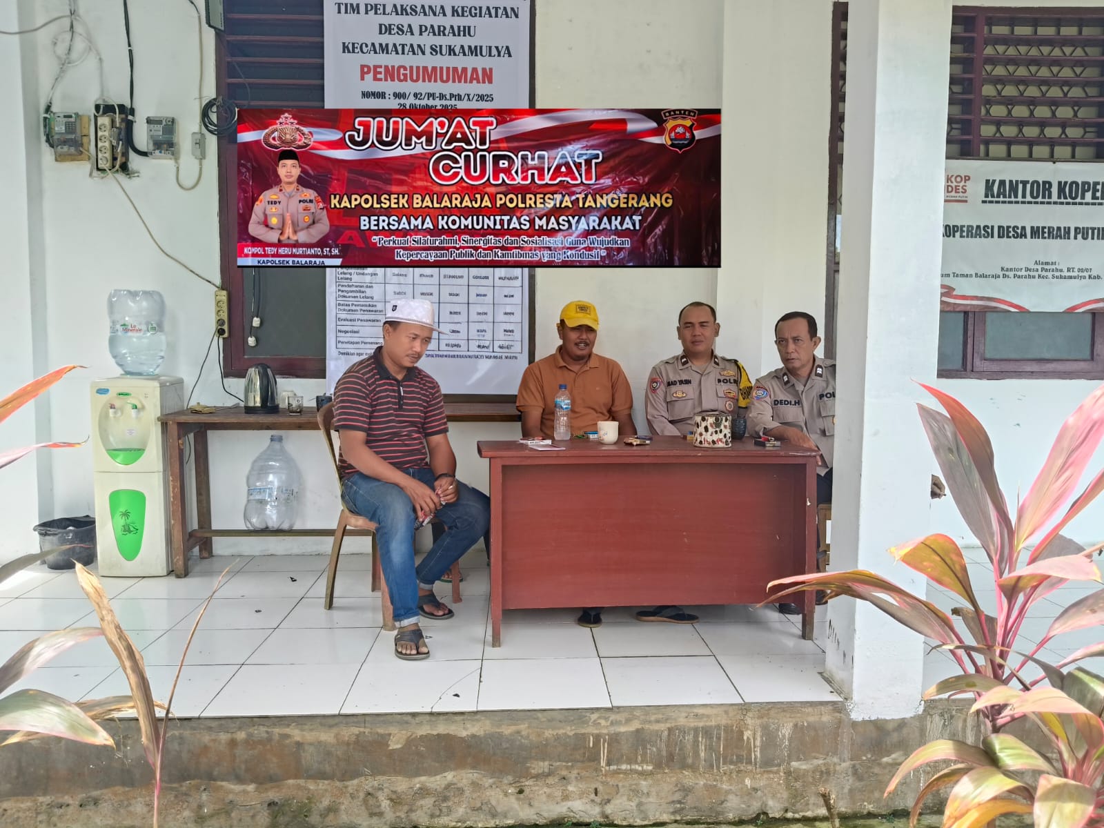 Selama sesi Jumat Curhat, Anggota Bhabinkamtibmas Polsek Balaraja mendengarkan dengan seksama setiap cerita yang disampaikan oleh masyarakat. Ia memberikan perhatian penuh dan memberikan solusi atau saran yang relevan terhadap setiap permasalahan yang dikemukakan.