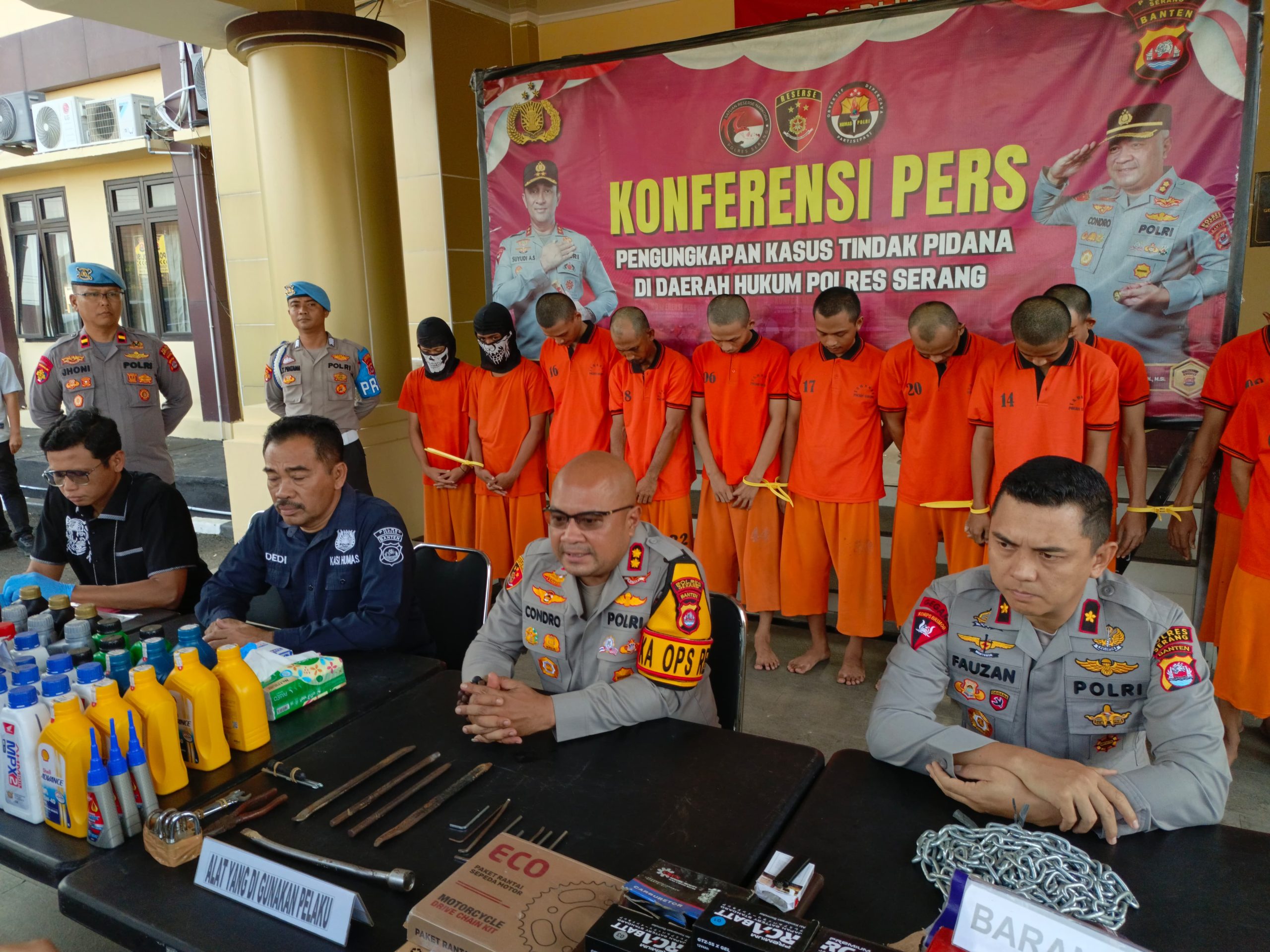Kedua belas tersangka itu, TLS, 27 tahun, SUH, 30 tahun, MAR , 35 tahun, ROM, 23 tahun, HAR, 43 tahun, IJP, 35 tahun, FA, 22 tahun, IB, 62 tahun, PA, 16 tahun, ASS, 15 tahun, TA, 21 tahun, dan DH, 24 tahun, yang merupakan warga Kabupaten Serang.