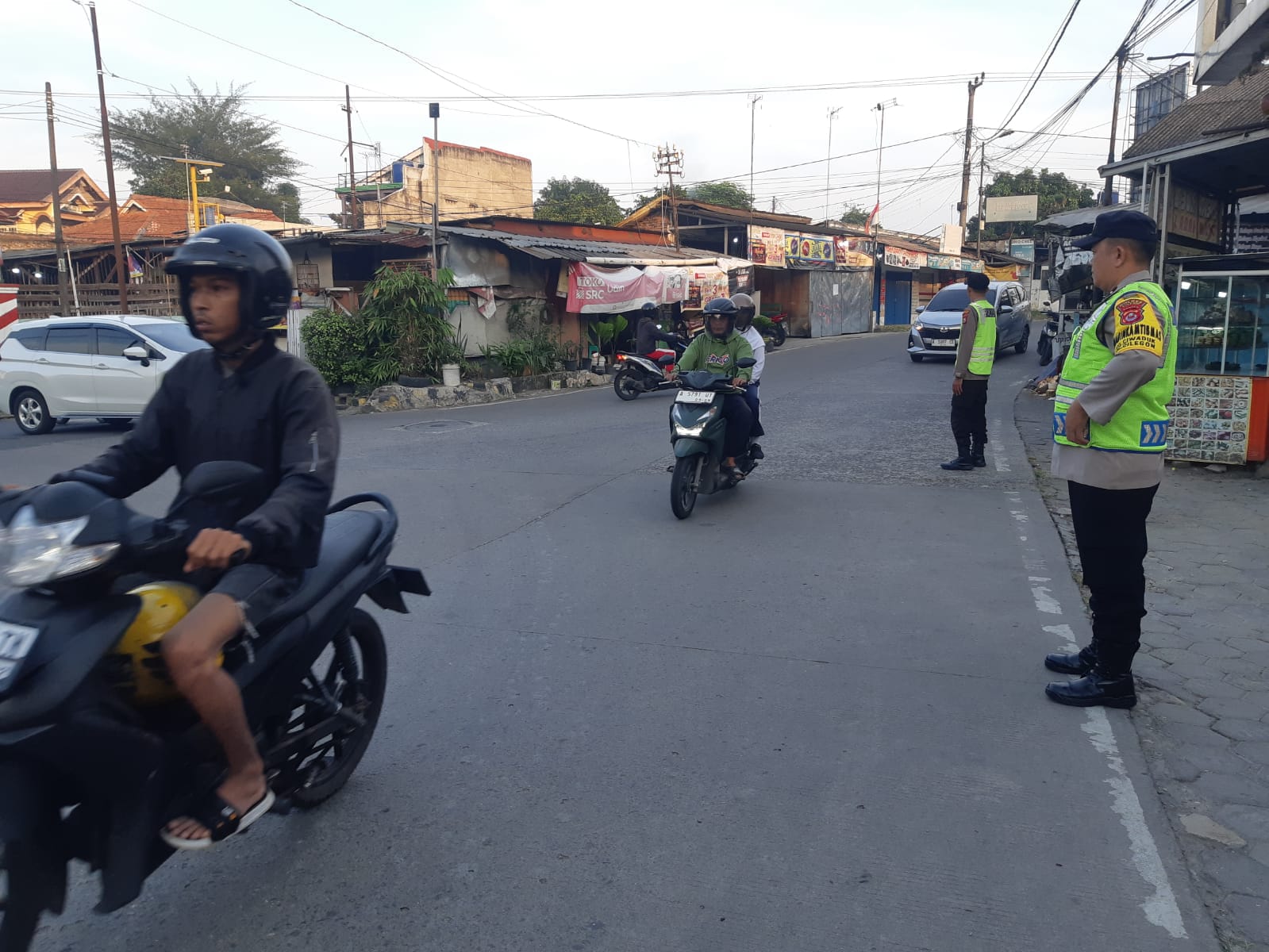 JPPOS.ID || Dalam rangka peningkatan pelayanan prima kepada pengguna jalan, Polsek Cilegon Polres Cilegon Polda Banten melaksanakan pengaturan arus lalu lintas di perempatan jalan arteri antisipasi kepadatan arus di pagi hari.