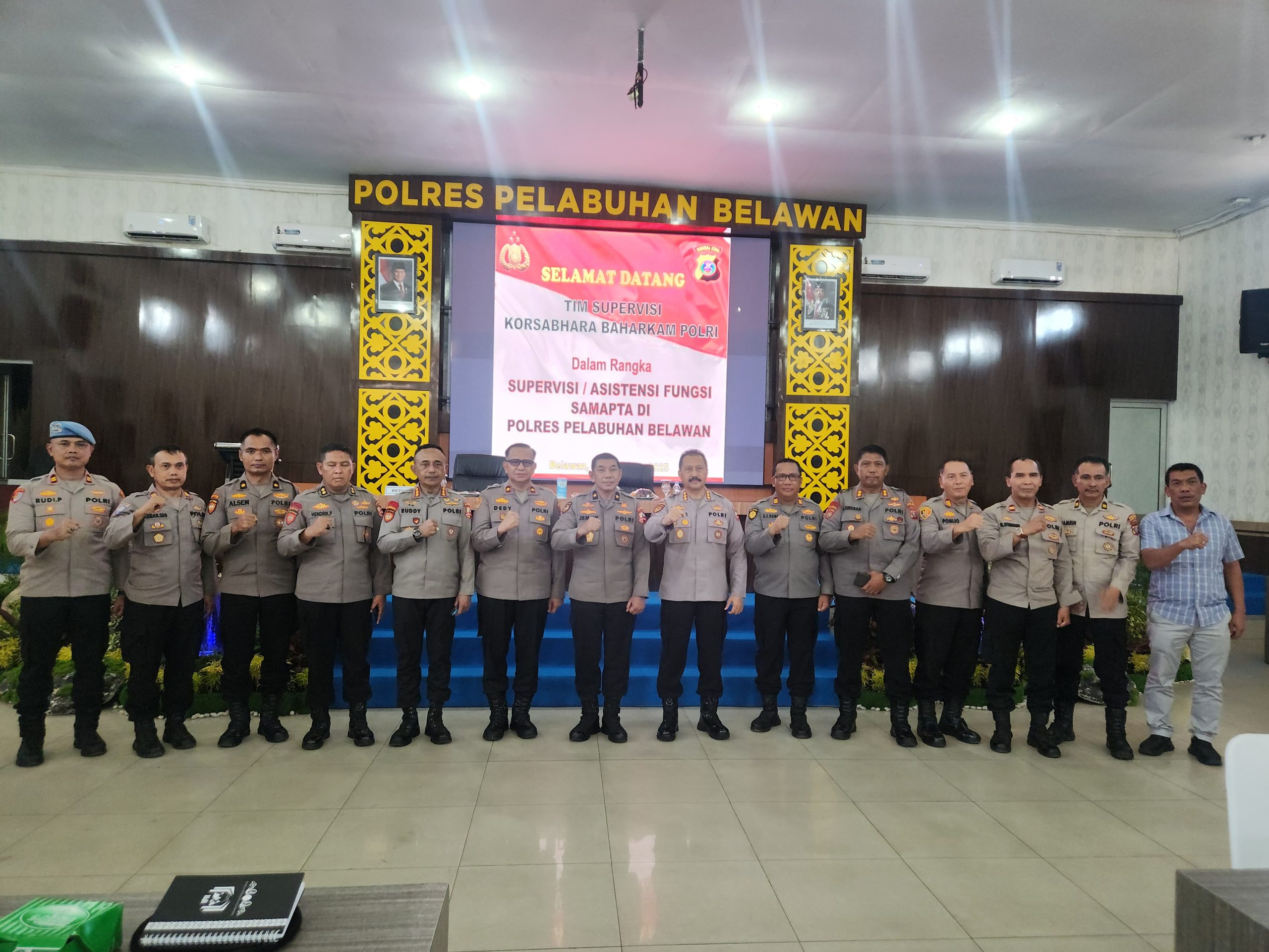 Polres Belawan (15.00 – 17.00 WIB). Kunjungan hari kedua diakhiri di Polres Belawan, di mana Tim Supervisi disambut oleh Wakapolres. Fokus kegiatan tetap pada pendalaman fungsi dan pengecekan kesiapan personel dan peralatan.