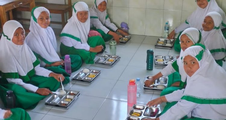 Siswa MI Irsyadut Tholibin Antusias Sambut Hari Pertama Program MBG Daerah|23 September 2025oleh Redaksi JPPOS.ID || Sebelum menyantap hidangan, para siswa MI Irsyadut Tholibin bersama guru