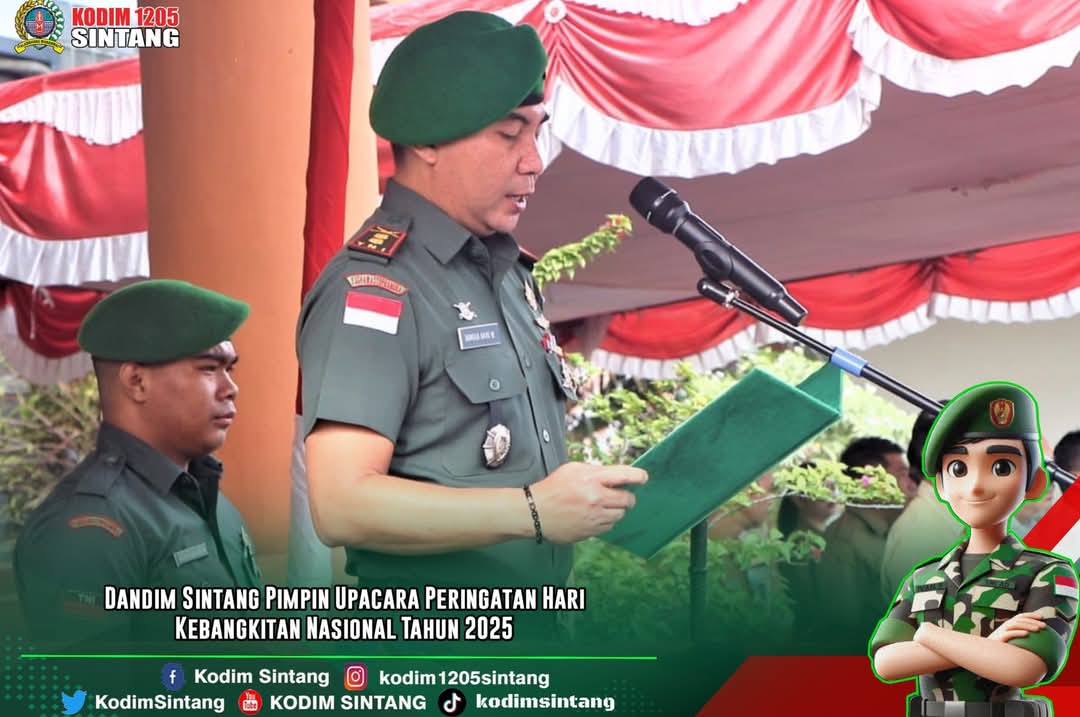 Dandim Sintang Letkol Inf Rangga Bayu Widiartha saat membacakan amanat Menteri Komunikasi dan Digital Meutya Viada Hafid menyampaikan tepat di tanggal 20 Mei 2025, kita tidak sekadar memperingati sebuah tanggal dalam kalender nasional. Kita sedang membuka kembali halaman penting dari sejarah perjuangan bangsa, halaman yang ditulis bukan dengan tinta biasa, tetapi dengan kebangkitan kesadaran, semangat persatuan, dan keberanian menolak untuk terus terjajah.