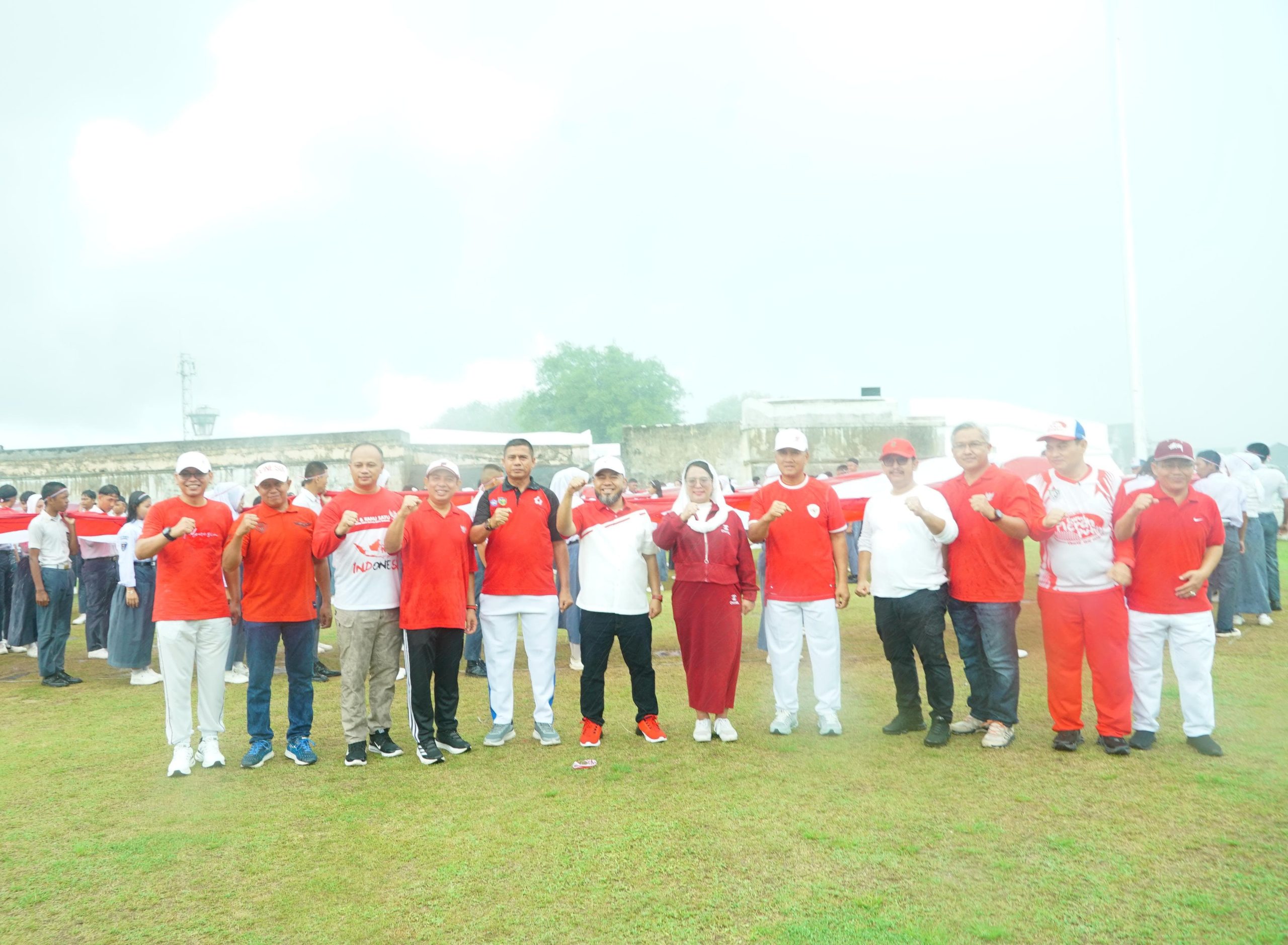 Peringatan dimulai dengan upacara kehormatan, kemudian dilanjutkan dengan formasi bendera Merah Putih membentuk angka “80” sebagai simbol HUT ke-80 Kemerdekaan Republik Indonesia.
