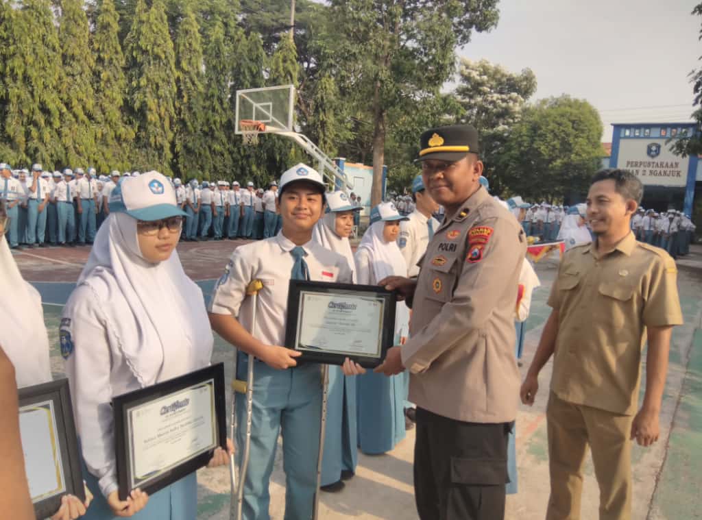 Sementara itu, Plt. Kepala SMA Negeri 2 Nganjuk, Drs. Bowo M., M.Pd., menyampaikan apresiasinya atas kehadiran Polres Nganjuk di sekolahnya.