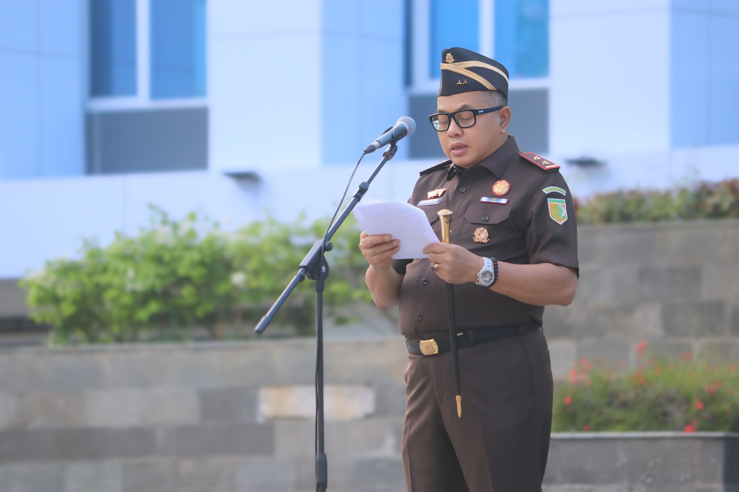 Bertindak sebagai Inspektur Upacara, Kepala Kejaksaan Tinggi Sulawesi Tengah Dr. Bambang Hariyanto, yang memimpin langsung jalannya prosesi yang dihadiri oleh para pejabat struktural, jajaran Kejaksaan Negeri, serta seluruh insan Adhyaksa di lingkungan Kejati Sulteng.