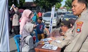 jppos.id/Nganjuk – Polres Nganjuk melalui Bagian SDM melaksanakan sosialisasi SPMB SMA Kemala Taruna Bhayangkara, SMA Taruna Bhayangkara Jawa Timur, serta Pendaftaran Bintara Brimob Polri Tahun 2026 di area Car Free Day Alun-alun Nganjuk, Minggu (16/11/2025).