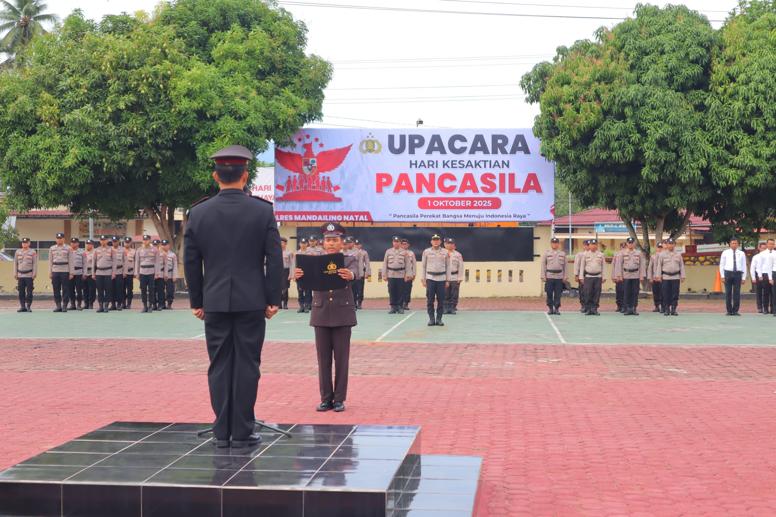 Tertib upacara dimulai dari laporan perwira upacara. Pembacaan teks Pancasila, UUD 1945, Naskah Ikrar, hingga pembacaan doa dapat dijalankan dengan baik. Upacara Hari Kesaktian Pancasila di Polres Madina berlangsung khidmat.