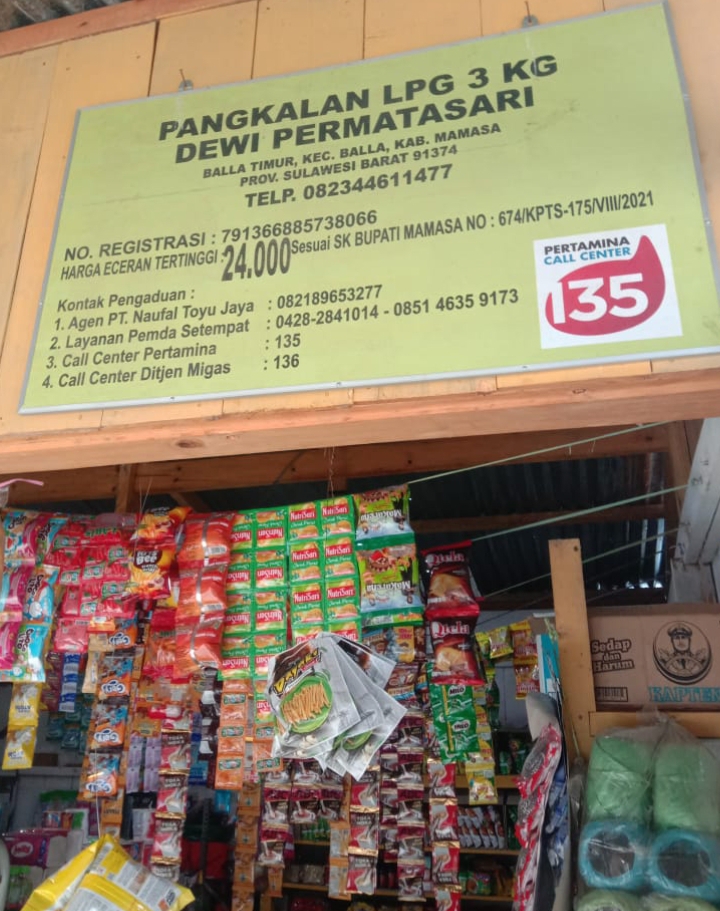 Dalam papan informasi pangkalan tercantum Harga Eceran Tertinggi (HET) sebesar Rp 24.000, sesuai SK Bupati Mamasa No. 674/KTPS-175-VIII/2021. Namun menurut warga, harga tersebut semestinya berlaku ketika tabung gas sudah berada di Desa Balla Timur.